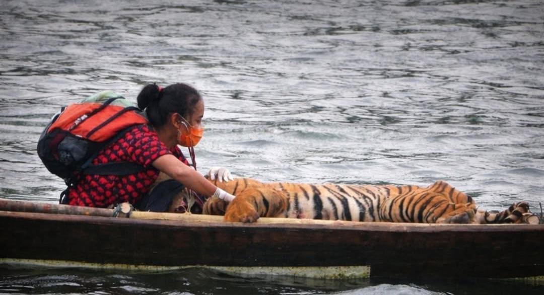 Dokter Hewan Ini Temani Harimau Sumatera Dievakuasi Lewat Sungai, Fotonya Viral