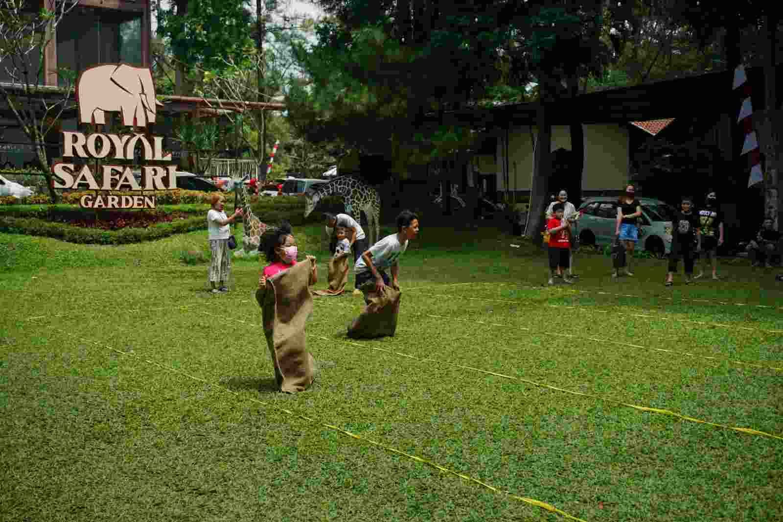 Sama halnya seperti perayaan HUT RI yang biasanya identik dengan perlombaan tradisional, namun di Royal Safari Garden berbeda dan unik, karena untuk perlombaannya melibatkan satwa. Seperti perlombaan lari rintang bersama anjing broder colli, lomba lari bersama burung kakatua. Untuk menambah kemeriahan ada juga perlombaan tradisional lainnya, lomba sumpit ke botol untuk anak-anak, lomba balap karung dewasa, dan lomba transfer ball untuk keluarga.