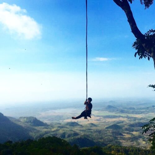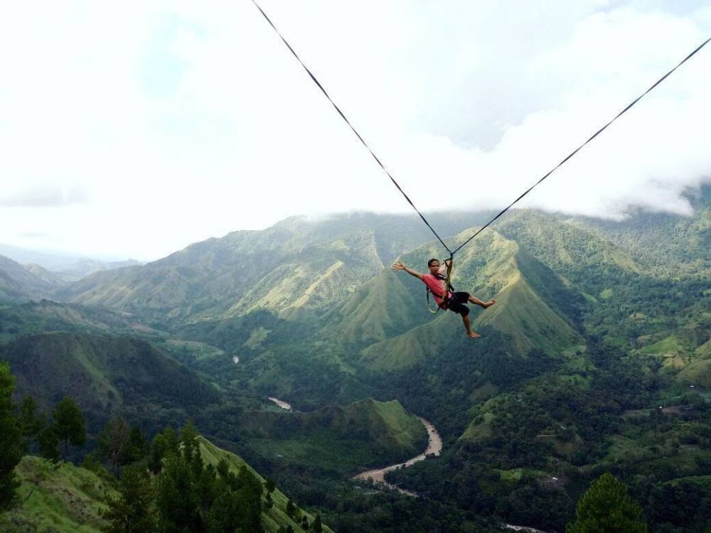4. Ayunan Angkasa di Brebes, kamu bisa uji nyali dengan seutas tali. Suguhan alamnya luar biasa, mulai dari perbukitan hingga hutan.