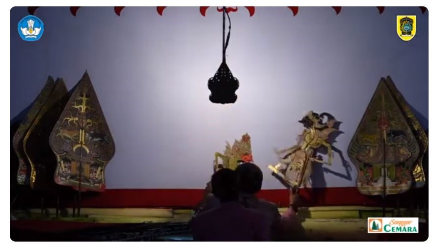 Pagelaran Wayang kulit malam Jumat Pon yang juga dihadiri oleh Pelaksana tugas (Plt.) Kepala Biro Kerja Sama dan Humas, Kemendikbudristek, Anang Ristanto, menggunakan gamelan dan alat musik tradisional Jawa.