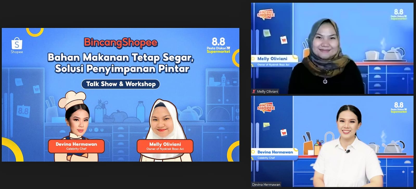 Putri Lukman, Head of Electronics & FMCG Shopee Indonesia mengatakan “Bahan makanan merupakan investasi besar dalam dapur, maka perlu diketahui apa saja yang benar-benar dibutuhkan saat berbelanja. Dalam pengelolaannya, keterampilan dan ketelitian juga dibutuhkan agar dapat mengoptimalkan bahan tersebut hingga dapat digunakan dengan baik. Berangkat dari hal tersebut, sebagai bagian dari kampanye Shopee 8.8 Pesta Diskon Supermarket, BincangShopee kali ini kami hadirkan khusus untuk berbagi ilmu melalui sesi talkshow dan workshop untuk seluruh masyarakat Indonesia terutama para pengguna setia Shopee mengenai pentingnya mengetahui cara menyimpan dan mengelola bahan makanan yang pintar, demi menjaga nilai gizi, rasa, kualitas, kesegaran dan masa umur pada bahan tersebut.”